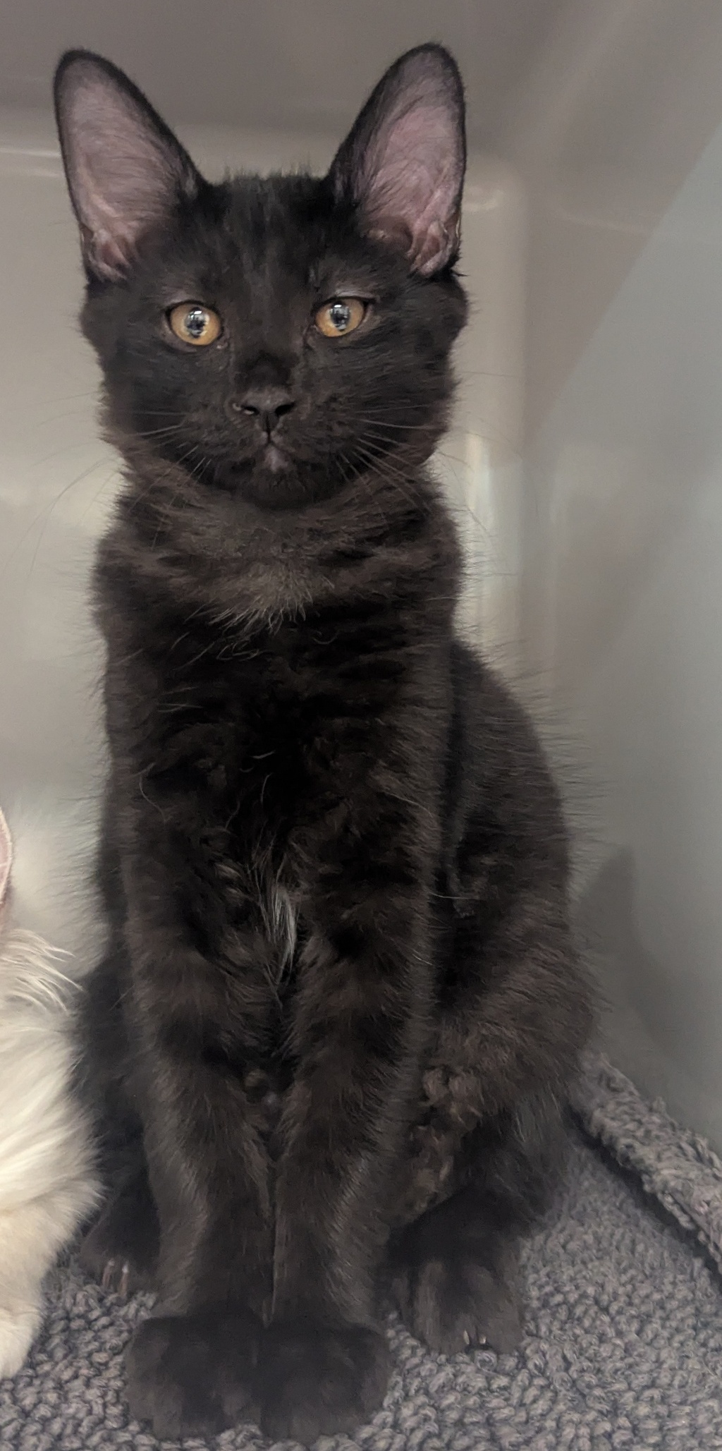 Cola is a bubbly little kitten with a big personality! She's playful, curious, and always ready for an adventure. Whether she's chasing her favorite toy, exploring new corners, or snuggling up for a nap, Cola will keep you smiling with her kitten antics.