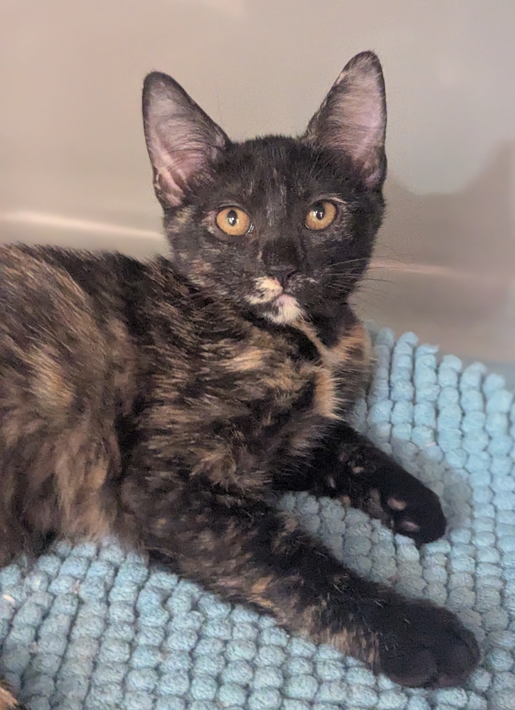 Apple is a sweet, playful kitten who's full of energy and curiosity. She loves chasing toys, exploring new spaces, and curling up for a cozy nap after a fun play session. Apple is the perfect mix of affectionate and adventurous-she'll keep you entertained with her kitten antics and melt your heart with her gentle purrs.
