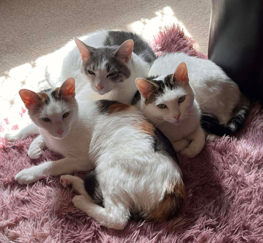 Minty is a beautiful boy who loves his ladies Ruby and Suki! All will groom each other, snuggle up in a cuddle puddle, play together and chat away with each other. Truly, they will warm your heart daily with their special bond and in time make you the fourth member of their clan.