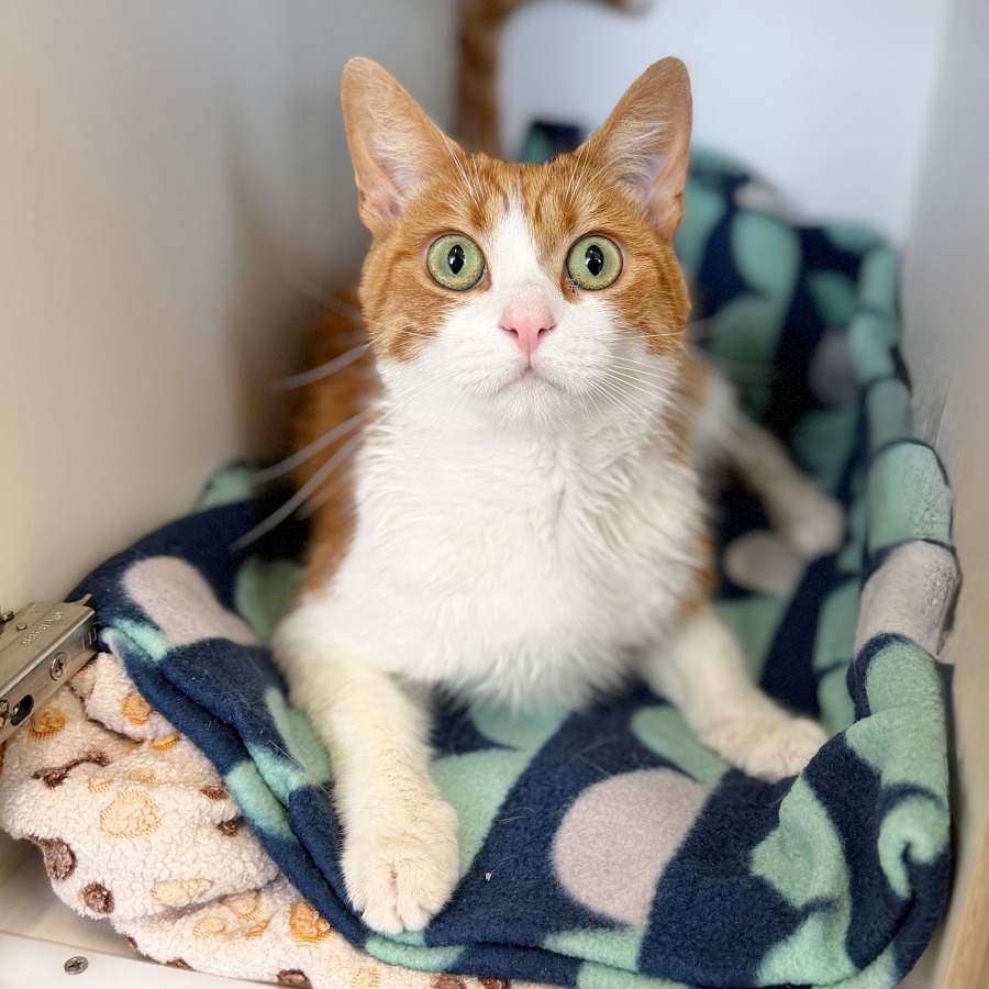 Valentino is the epitome of a cool cat! With his striking ginger and white fur, he has a personality to match, laid back and totally friendly. He's the kind of cat that walks into a room and instantly owns it with his calm confidence.
