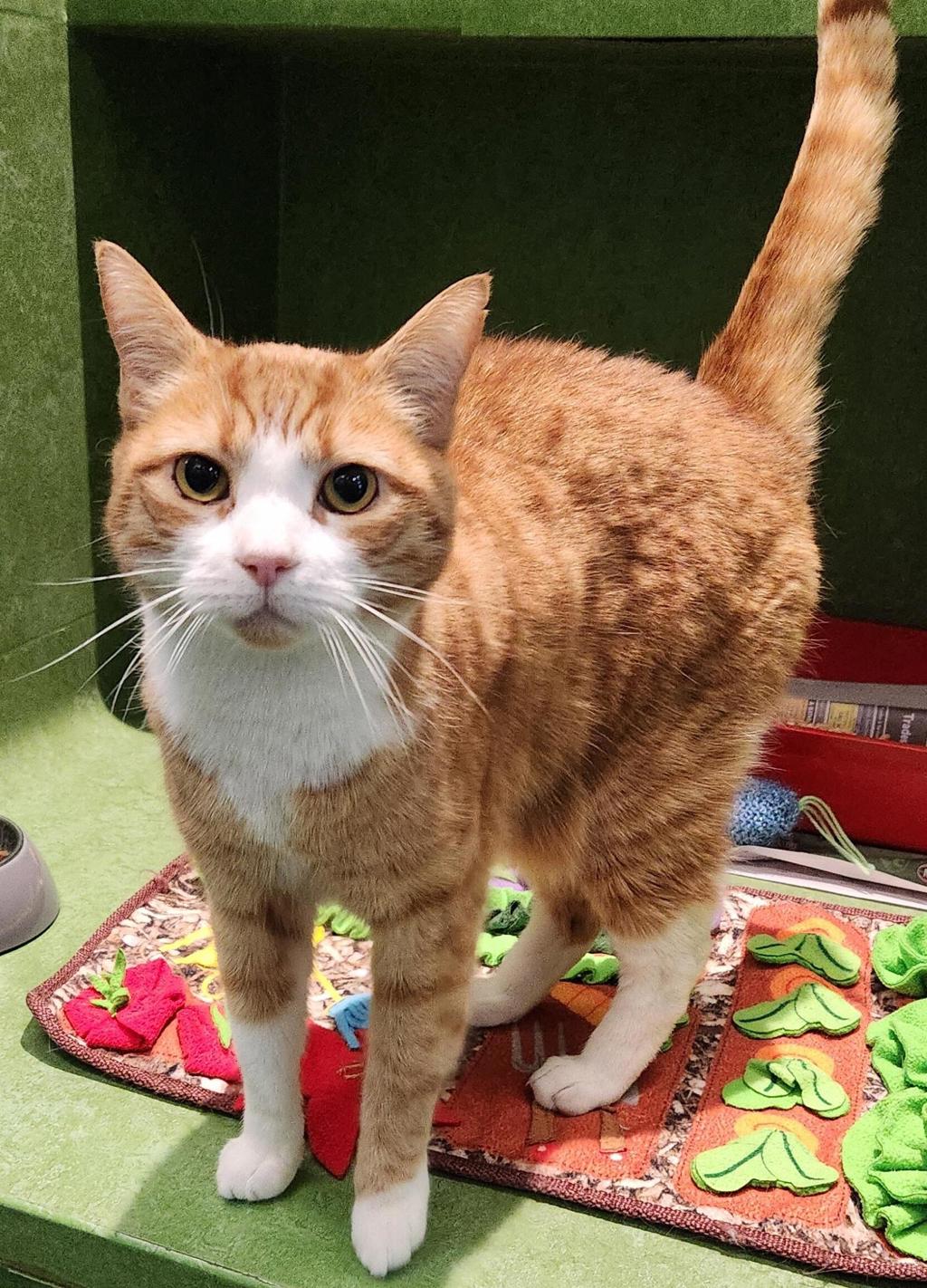Rupert is a charming gentleman with a wonderful nature. He may be a little shy at first, but once he feels comfortable, he happily leans into gentle head rubs and pats, showing just how sweet he truly is. He will thrive as an indoor cat in a calm home with older children or adults who are happy to go at his pace and let his confidence grow naturally. Rupert may also do well with another calm feline friend, with slow and thoughtful introductions. Rupert will adore plenty of enrichment to keep his days interesting and fulfilling. He enjoys climbing cat trees, watching the world from window perches, engaging with puzzle feeders, and relaxing with toys during gentle play sessions.