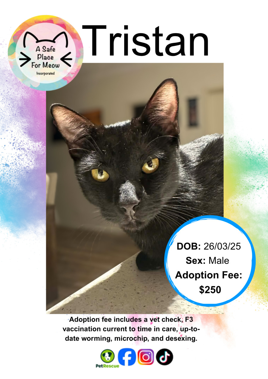Tristan, a sleek and handsome feline who's sure to win your heart with his stunning shiny coat and understated charm. Though he may be a little reserved initially, beneath that soft demeanor lies a world of delightful surprises just waiting to be discovered.