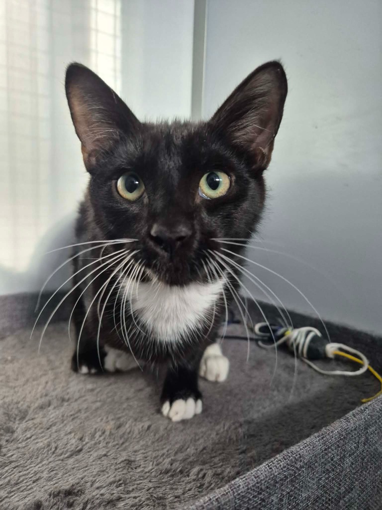 He’s sweet-natured, gentle, and would thrive in a calm, patient home where he can take things at his own pace. Elf could live with or without other cats, and while he hasn’t given us his official stance on dogs yet, slow introductions would be key if there’s a canine in the picture.