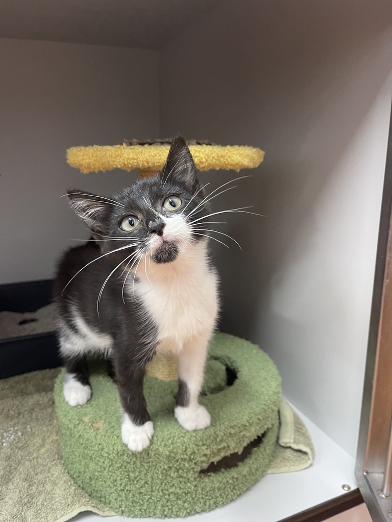 Quinnie is an adorable kitten with a heart full of love and a playful spirit that will brighten any home. She's curious, confident, and always ready for an adventure-whether it's chasing toys, exploring new spaces, or curling up for a cozy nap.