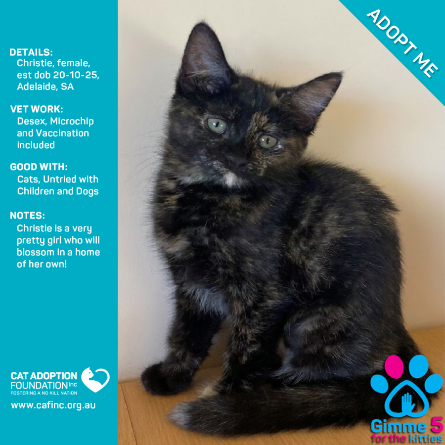 Donate to Christie at Cat Adoption Foundation Incorporated via Shout