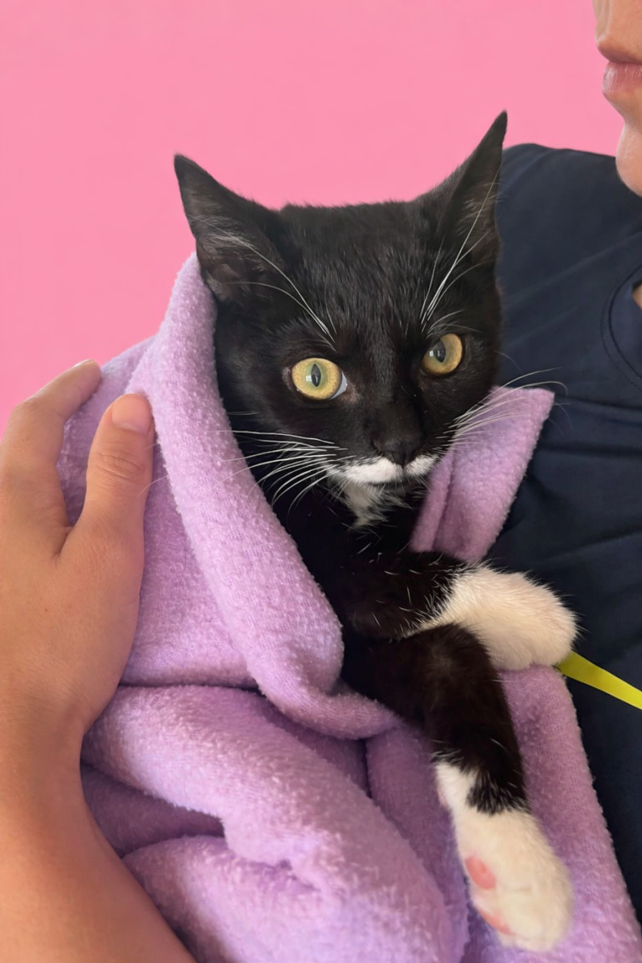 Razzle has a warm heart and loves the company of other cats and dogs. Her sociable nature means she'll bask in the camaraderie of a bustling home filled with playful interactions and cozy naps. Despite her young age, Razzle displays a sense of elegance, often delicately prancing around the house as she explores her surroundings.