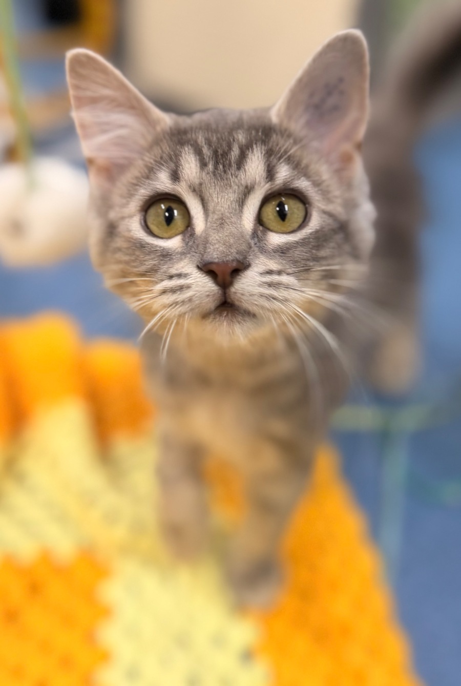 Found extremely unwell by a kind member of the public, Poppy was taken to a vet for urgent care before coming into our program. She battled cat flu and calicivirus and has shown incredible resilience. Poppy is shy when you first meet her, but once she feels safe she loves to play and will reward you with gentle smooches. She’s comfortable around both cats and dogs and would thrive in a patient, loving home.
