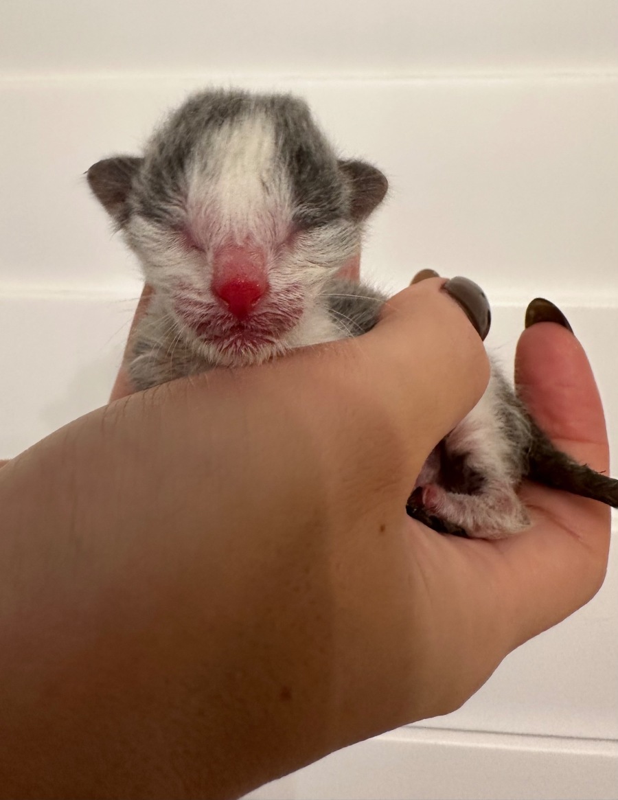 Clover was found at just one day old and brought straight to the clinic. One of our nurses began hand-raising her, and then — at the perfect time — a lactating mum came into care and took Clover on as her own. She has thrived ever since! Clover is cheeky, loves rubbing against your legs, and is a little chatterbox with a big personality.