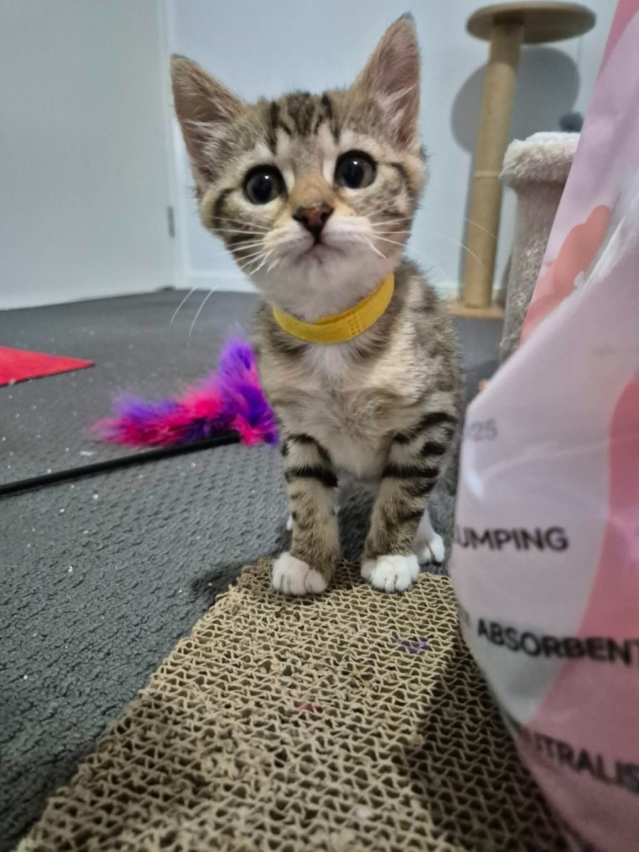 Introducing Wigglebutt, an enchanting kitten with a playful spirit sure to capture your heart. This delightful little feline exudes endless charm, always eager for playtime and the joys of a loving household. If your days are filled with laughter and fun, Wigglebutt will fit right in, adding her own sprinkle of joy to every moment.