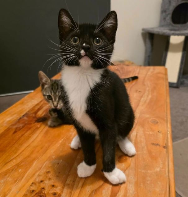 Oyster is a super playful little guy with a fun loving goofy personality. He was born in foster care to a very fearful mumma so he is still a bit unsure about people, but he has come a long way since being separated from his mum! He is currently living with his foster sister, Enoki, who is also looking for a home.
