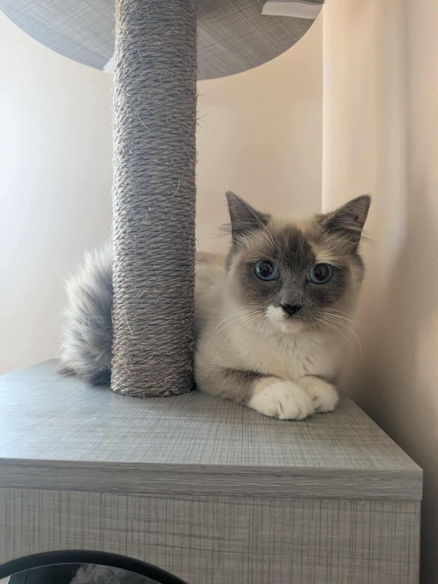 Sapphire is a breathtakingly beautiful ragdoll girl with a soft heart to match her stunning looks. With her gentle nature and calm, loving presence, she truly embodies everything people adore about the ragdoll breed. Sapphire moves through life with quiet grace, preferring affection that is tender and unhurried, and she forms deep, meaningful bonds with the humans she trusts.
