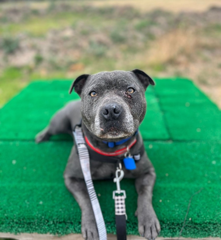 Coby is a classic Staffy sweetheart, full of charm, loyalty, and that signature people‑loving nature that makes the breed so special. He thrives on human company and is happiest when he can be close to his people, soaking up affection or simply hanging out by your side. He’s house‑trained, well‑mannered, and has all the makings of a truly wonderful companion for someone who’s home often and wants a dog who genuinely enjoys being part of daily life.
