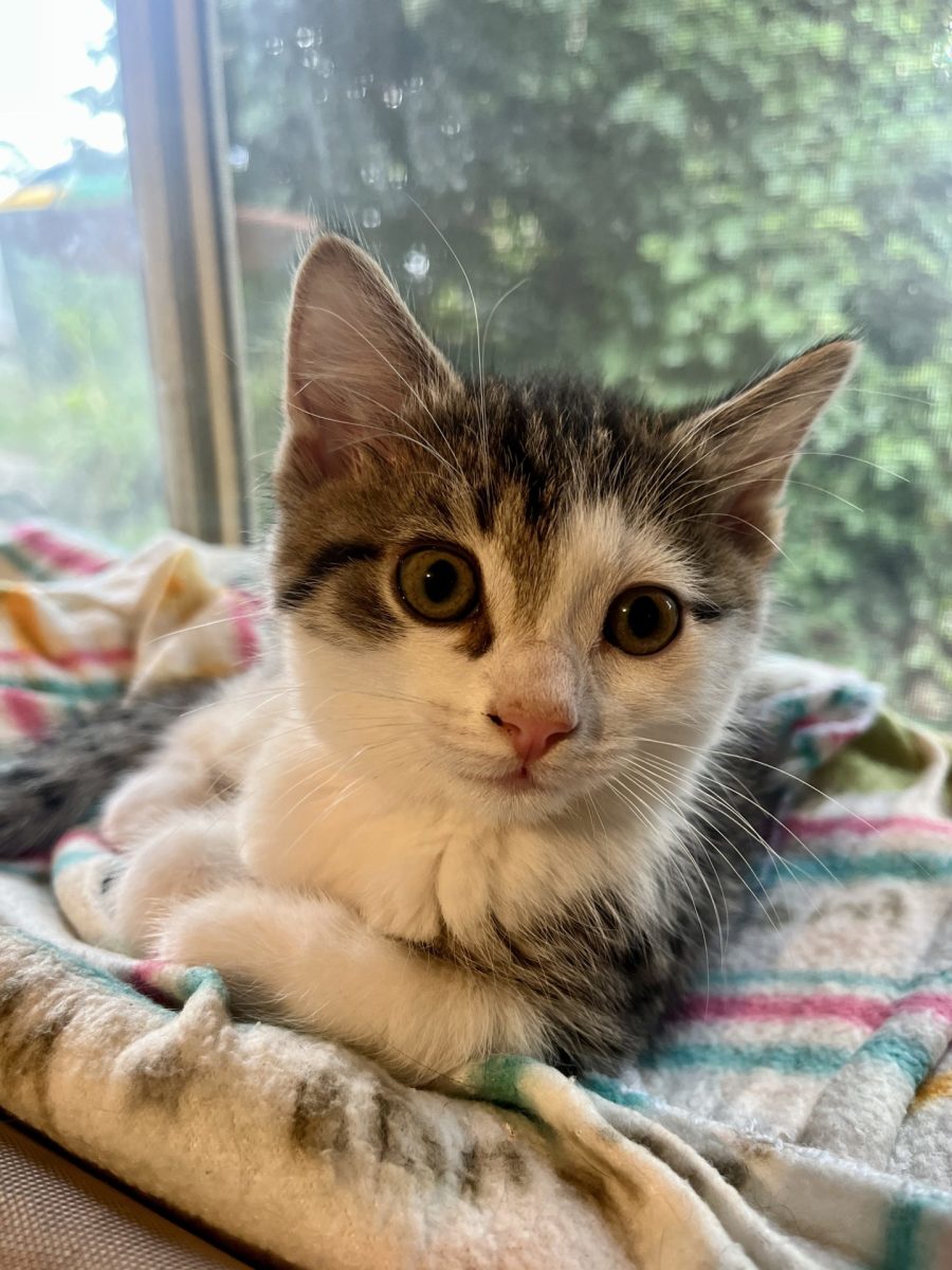 Alexa would love to find a home with another friendly cat or kitten. If she is adopted as a solo cat, she will need someone who is home most of the time so she doesn't get lonely. She will need plenty of toys and playtime. As with all Hunter Animal Rescue kittens, she needs to be indoor only or in a secure cat enclosure.