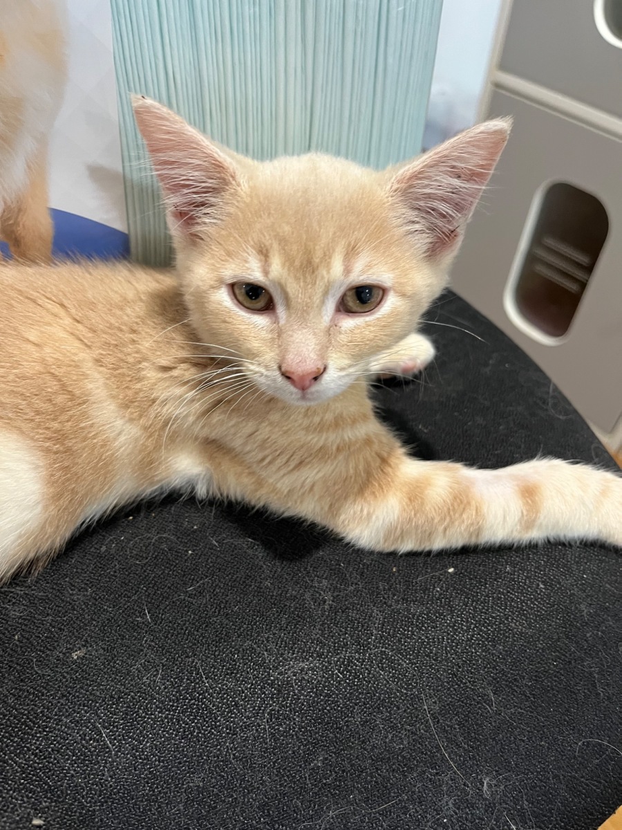 He is very used to being handled, happily picked up and cuddled — when he’s not running amok with playful kitten energy! Champers has the perfect balance of affection and fun, making him a joy to have around.