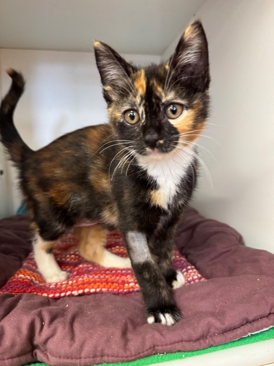 Maggie May is a bright, confident little kitten with a personality that fills a room long before her tiny paws arrive. She has that irresistible mix of playful boldness and soft sweetness, happily trotting up to new people as if she’s known them forever. With her curious eyes and gentle purr, she has a way of making everyone feel like they’ve just met someone truly special.