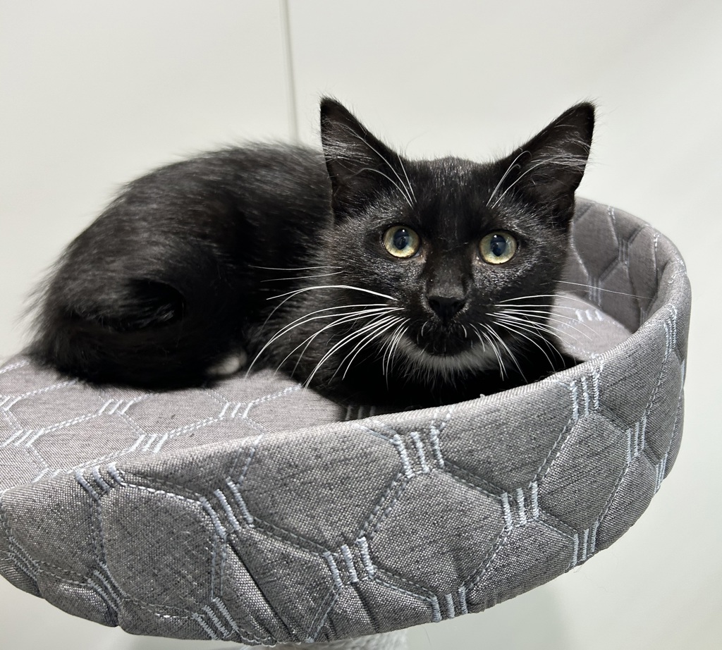 Vera is a delicate black-and-white female kitten who was rescued just before she fully turned wild. Naturally shy, she's still learning that the world can be a safe and gentle place, and she'll need an adopter who understands the importance of patience and trust-building.