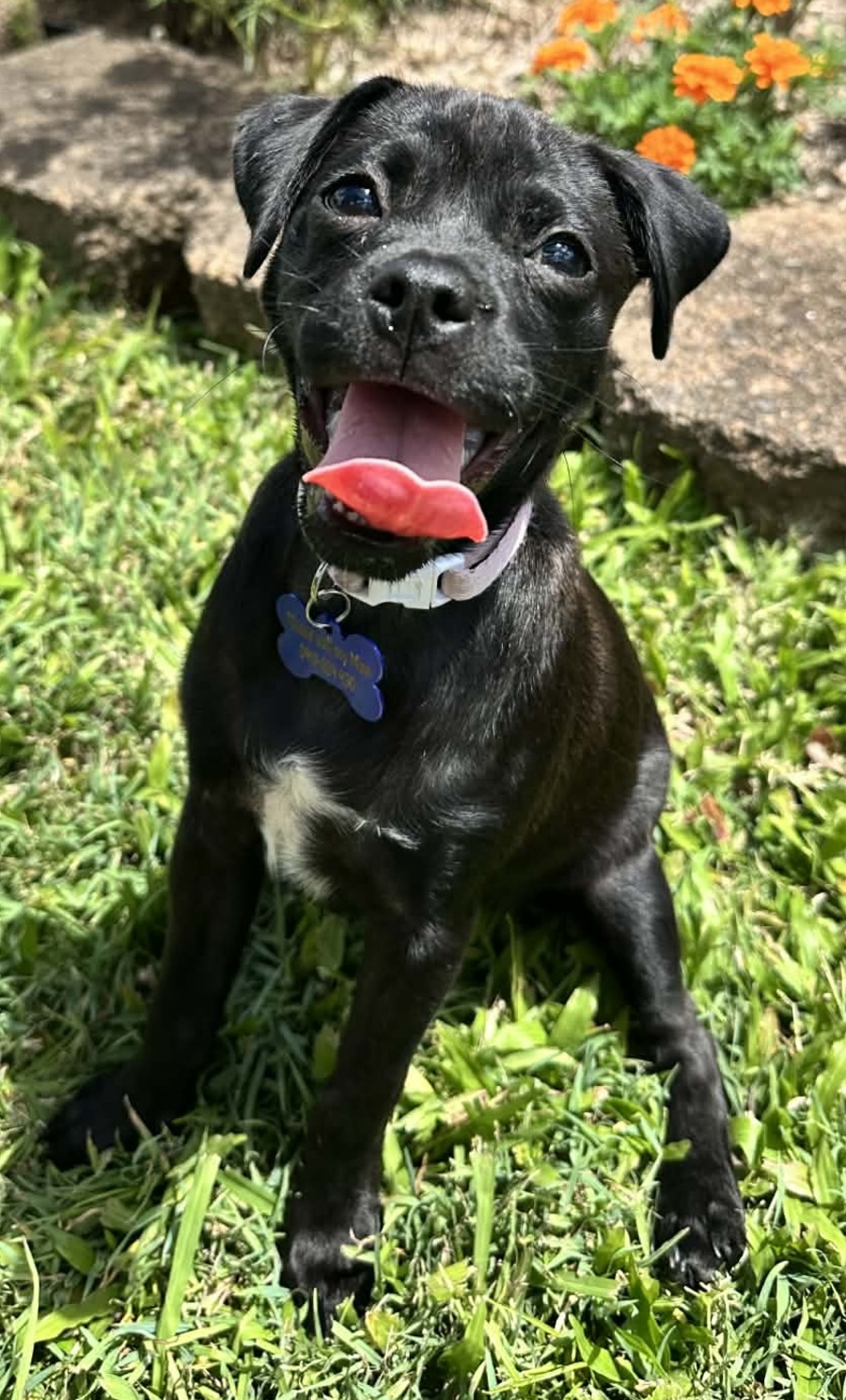 Lola is a 17-week-old Pug x Terrier bundle of confidence, curiosity, and cheeky charm. Don’t let her small size fool you — this little lady plays like she’s ten times bigger and has a personality that fills the room!