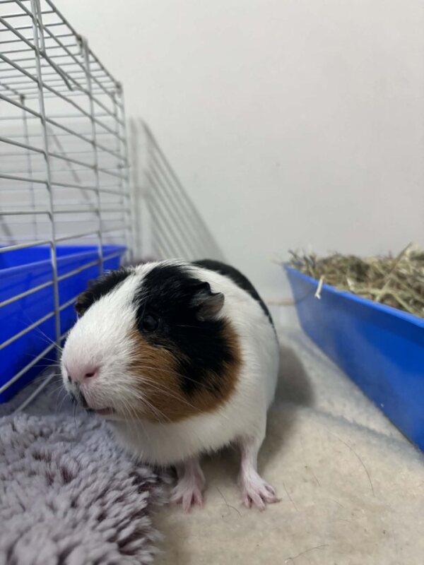 Patches is a delightful and handsome desexed male guinea pig with a big voice and an even bigger personality! He loves to chat with his humans and will happily announce when it’s time for food or attention. Curious by nature, Patches enjoys exploring his enclosure and investigating new sights and smells.
