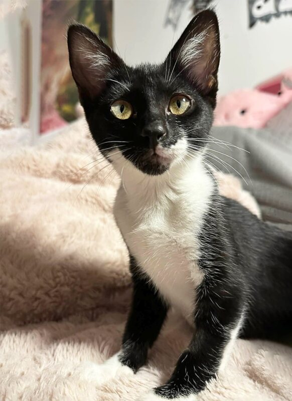 Tina is ready to find her forever family. This delightful little girl will add lots of joy to any family. If you are looking for a kitten to smooch with, Tina is your girl. Tina is happiest when she is with her human family but she also loves toys, games and a quiet spot to nap when play is done. She has been fostered with other kittens and adult cats so we feel she would also be happy to have another friendly cat or kitten in the home.