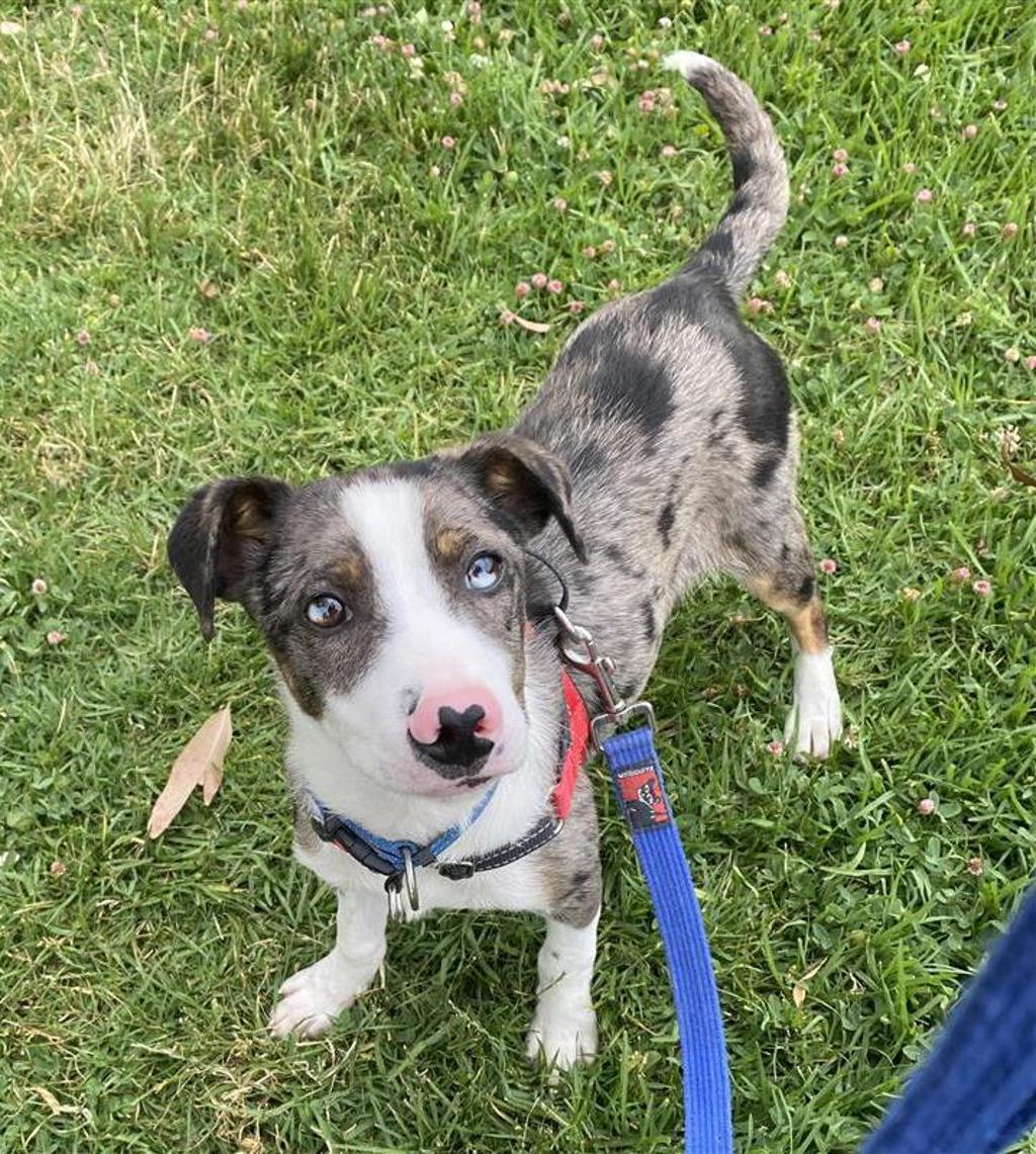 Merle would love an active family with a large, secure yard and plenty of time for exercise and enrichment. He could live with dog-savvy children, provided they are respectful with handling, and may be matched with a suitable young canine companion following a successful meet and greet. With patience, love, and dedication to meeting his physical and mental needs, Merle will grow into a loyal and fun companion.