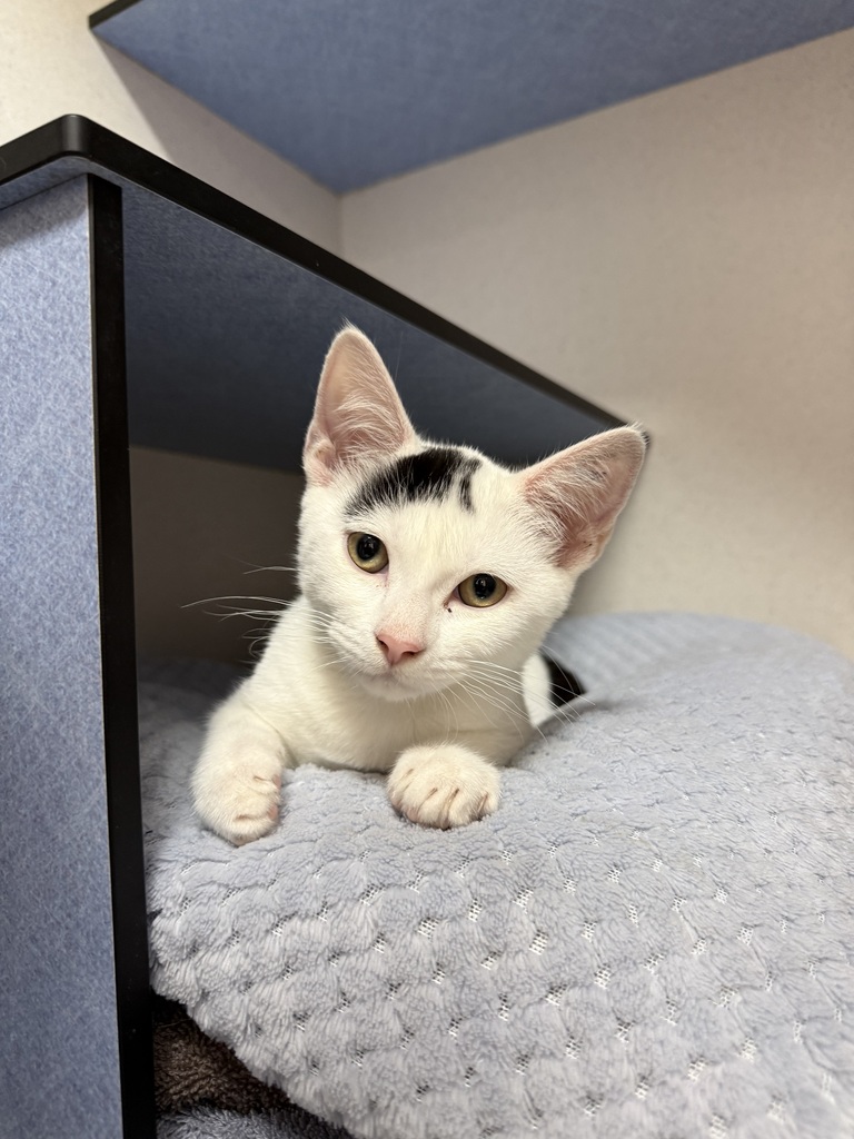 Prenna is a striking little kitten with a predominantly white coat highlighted by beautiful black markings. He is a sensitive young boy who can feel overwhelmed in new environments, so he will need a gentle, well-managed introduction to his new home. Starting Prenna in a small, quiet area and blocking off hard-to-reach spaces or escape holes will help him feel safe while he settles. Once confident, he can gradually explore the rest of the house at his own pace.