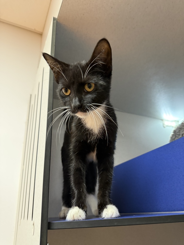 Scrunkle is a 5-month-old kitten with a heart full of curiosity and a playful spirit that will brighten any home. This little adventurer loves exploring new spaces, chasing toys, and curling up for cozy naps after a fun-filled day.