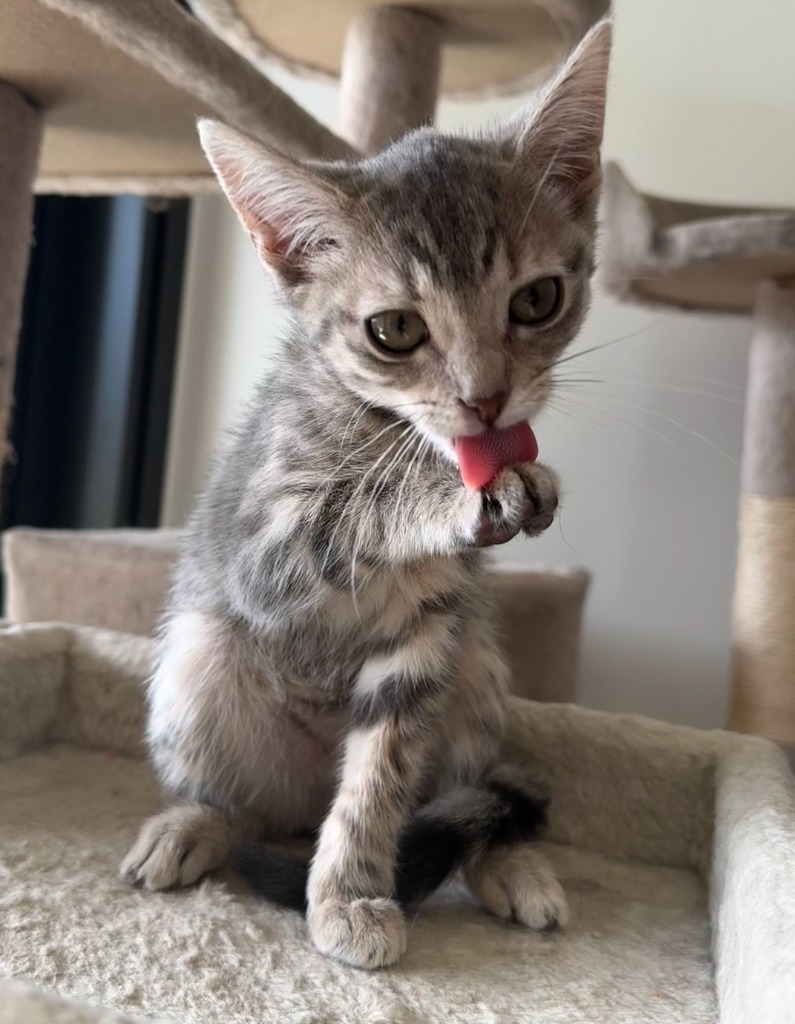 Roobert would thrive in a patient, understanding home that allows her to settle in at her own pace. She’s great with other cats and would enjoy feline companionship, and would likely suit respectful, gentle children who understand her boundaries. She’s a lovely match for adopters who appreciate a quieter kitten with a cheeky streak.