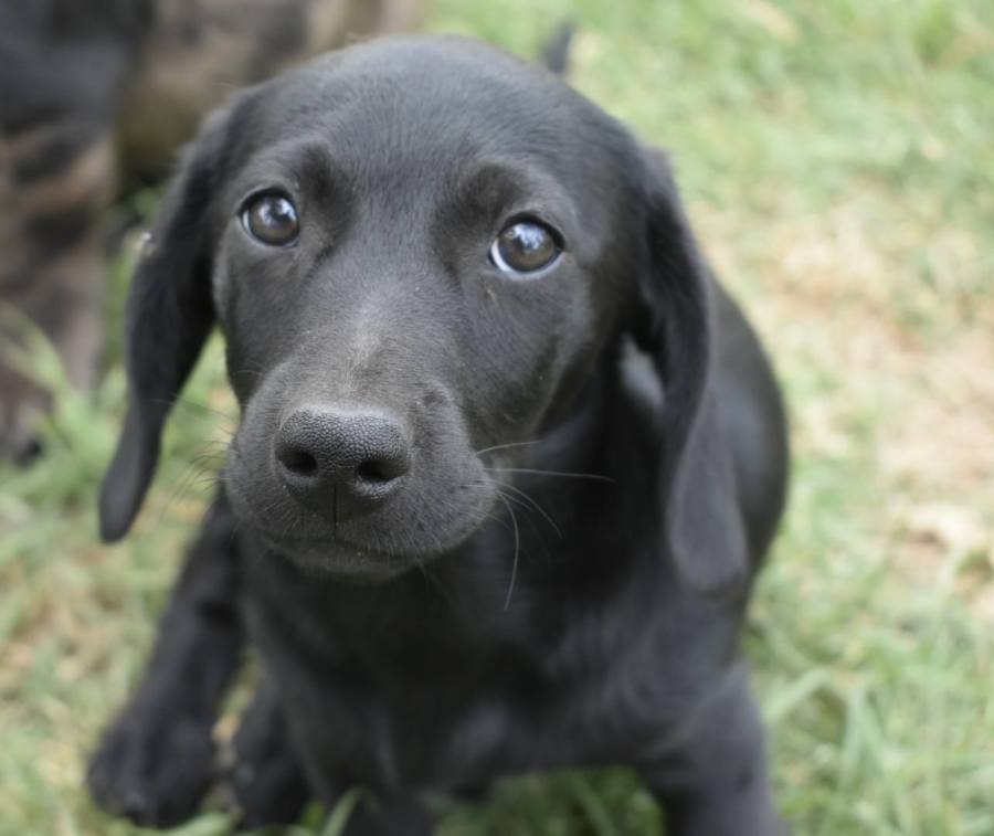 I sleep in my crate and am comfortable moving between inside and outside during the day, with plenty of naps in between. I can be home alone for three to four hours and cope well once I feel secure. I am learning my basics and am starting to sit nicely for meals. Toilet training is going well with the occasional small accident, especially if I am not shown where to go often enough.