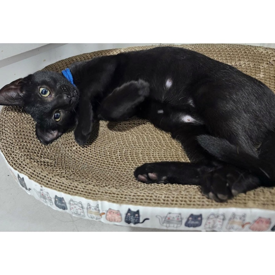 I’m confident, curious, and full of kitten energy, but I balance my zoomies beautifully with cuddle time. After a good play session, I’m more than happy to curl up nearby (or right on you) and settle in for a snooze.