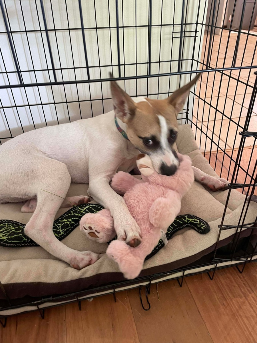She hasn’t been tested with cats yet, so a cat-free home would be ideal, or adopters willing to manage slow and careful introductions.