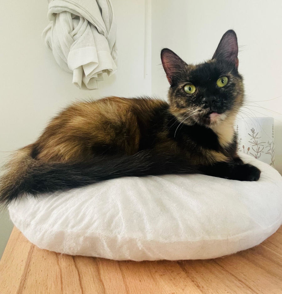 After being the most devoted, patient mama to her four kittens (Minx, Spook, Jingle and Pixie-Belle), it is finally Meatball’s turn to be the star of the show! She’s traded her "nursery" duties for a life of exploration, and she’s enjoying every second of it.
