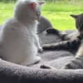 Where Arwen truly shines is with other cats. She absolutely loves feline company — playing, snuggling, and forming strong bonds. She has become particularly attached to a resident teenage boy cat and is cheeky and confident when interacting with cats. Because of this, Arwen must have a confident young cat or kitten in the home to help her feel secure and continue developing socially.