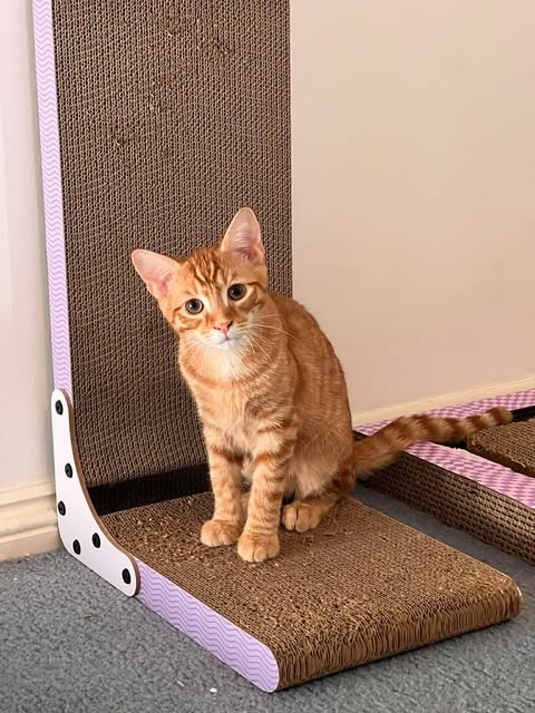 Blitzen is a sweet ginger boy who is still finding his courage in the world. He’s very shy and can hiss when first approached. This is not because he’s unkind, but because his mum was a spicy stray who never learned that people could be trusted, and Blitzen is still unlearning that fear himself.