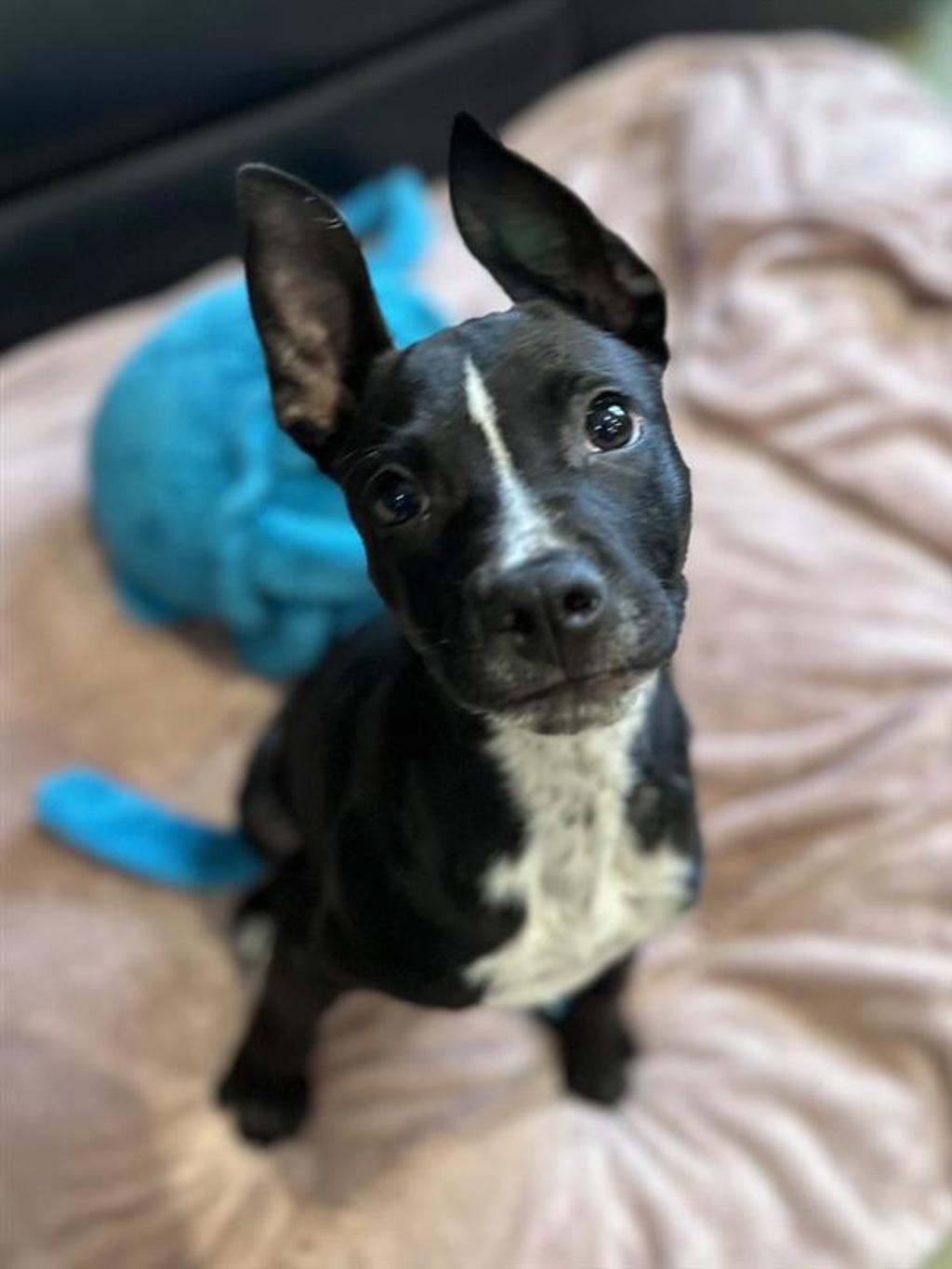 Meet Spud! This staffy x Blue Heeler pup who is fun-loving and ready to take on the big wide world. Spud would thrive in a home with no younger children and no cats, please. He'd love to attend puppy classes and will benefit from ongoing positive training. Spud could go home with a friendly role-model dog, pending a successful meet and greet. If you're looking for a little whirlwind of fun, energy, and affection who will keep you active, come and meet Spud!