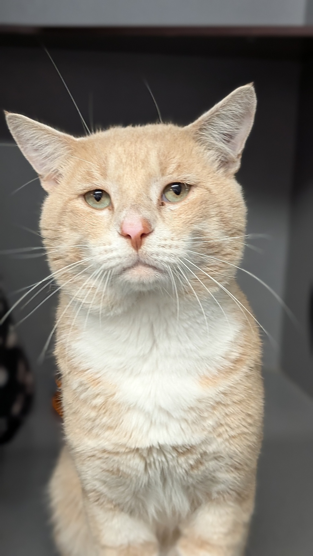 I am a big cat with a sweet personality. I am a confident and friendly boy, so I would be a great family member! I am an absolute sweetheart, who just adores being around my people. I did have a night in foster, and my carer said I was a perfect boy; she even nick named ghost cat because I just showed up at her feet when called! People love ginger and cream cats, so I hope that you are one of them too! Being six years old means that you don't have all those annoying destructive times with me as you would a kitten, and I am still young enough to be playful and full of fun for many years to come! I have been in the shelter since before Christmas and would love to have my own home where I can lie on the couch with you and be a great companion.