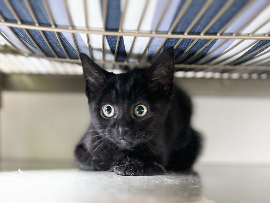 This 2-month-old black kitten is a shy little lady who may be spicy at first, but with patience she blossoms into a total love bug. Once she feels safe, she adores gentle pats and goes crazy for her toys. A sweet soul waiting to shine. 🖤