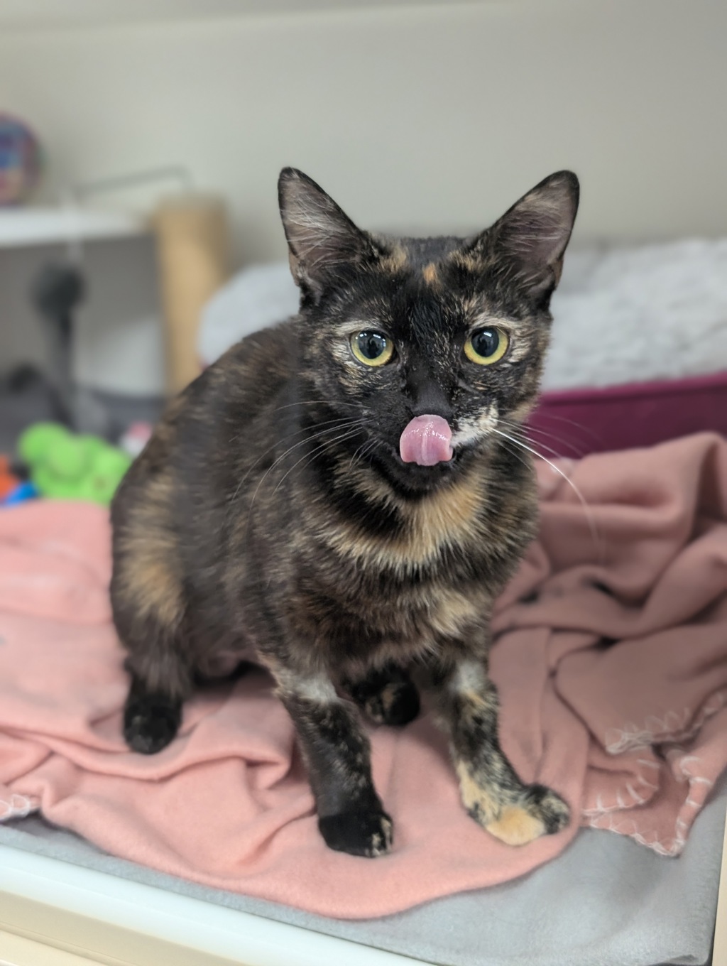 Hoggy is a beautiful chocolate/tortoiseshell kitty with a stunning coat and an even better personality. She is nice, friendly, and happy to be around people, making her a joy to spend time with.