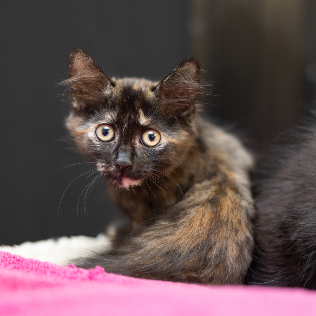 Hi there, I'm Tara. Aren't I just the sweetest little thing?! I hope you understand that I'm going to grow up to be cat soon, and cats can live 20 years on average, so I'll be looking forward to sharing a long and happy life full of love and laughter with you. I have no idea what I want to be when I grow up just yet, so maybe you could help me decide. I'm too young and full of energy to know if I'm going to be a smoocher or a player or a midnight meower. I'm just concentrating on being the fun ball of fluff I am right now. Please take me home and help me become the best version of myself that I can be.