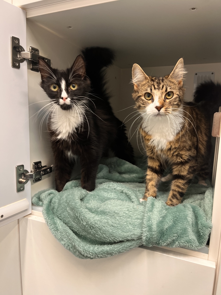 These playful sisters are looking for a fun, active household with plenty of toys, climbing spaces, and adventures to keep them entertained. They came from a previous home where they were friendly with everyone, including visitors, and have experience living with older children and other cats.
