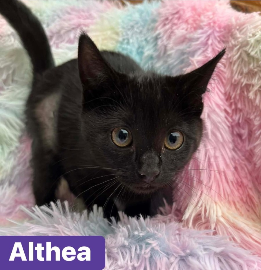 Althea is already comfortable with a variety of family dynamics and is likely to settle in well with another cat-friendly cat or dog, given the right introductions. Her affectionate nature shines through in her interactions, and she's always up for a game or a cozy cuddle session. Whether it's teasing you with a playful pounce or snuggling up for some quiet time, Althea knows how to make every moment special.