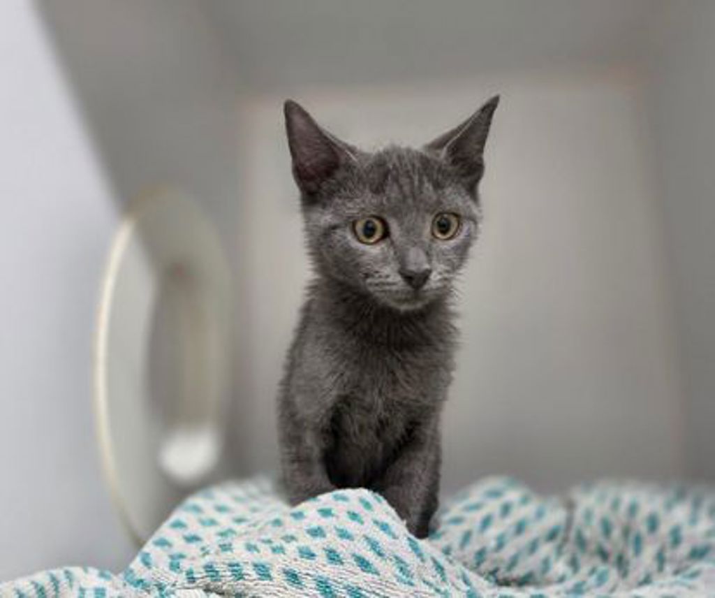 Smoke is a playful, curious little kitten with a big personality packed into a tiny body. This sweet fluff loves chasing toys, exploring every corner, and then curling up for cozy naps once playtime is over. He has the loudest purr for such a small kitten and isn't shy about asking for cuddles.