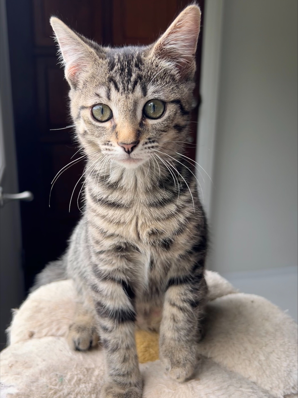 Hi! I'm Aelin, the princess of my siblings! I'm the type of girl who deserves to be spoilt and I'm not afraid to tell you about it! I'm an expert at sneak attacks, when you're least expecting it, I'll smack your legs and then run so fast you can't even see me! And I'm not afraid to give you a smack of encouraging if you're taking too long to prepare my food, like I said I'm a princess who deserves only the best please! I love running around with my siblings and then cuddling up with them after terrorizing everyone. Even though I'm an independent girly, I do love a good chin scratch and snuggle, and will come up to you for soft pats. I spent some time in foster with older cats and dogs, I was a respectful of the cats but wasn't afraid to tell the dogs off for getting too close, so would prefer a home with no dogs or dogs that will give me my space. So, if you're looking for a spoilt queen to bring joy and a touch of sass to your home, I'm your girl!