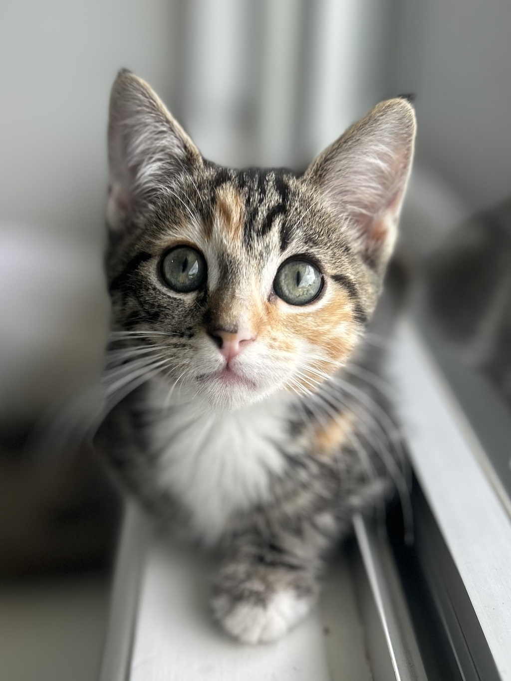 I'm the sweetest little girl you'll ever meet! I've been an angel while I've been in foster, I get along great with all the other kitties, playful with my siblings and gentle with the younger ones! I even smooch up to the older cats in the home and listen to them very well! I've been getting braver with the big doggos there too so I wouldn't mind living with some calm pups! I love to run up and greet you with a purr and get some pats in return. I'm a very affectionate girl once I get to know you, so I would love to go to a home where I can curl up on the couch and snuggle in bed with you! So, if you're looking for a sweet girl to bring joy and playfulness into your home, I'm the perfect match!
