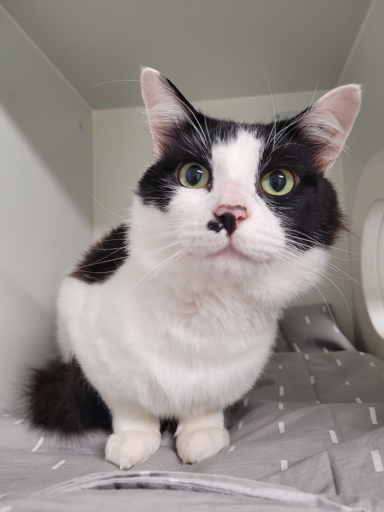 Meet Charlie Chaplin, our quiet little gentleman with a tender heart and a soulful gaze. Charlie Chaplin came to us with no history, but from day one he has been a very good little bean. Initially quite shy, he has slowly learned that people can be kind, and now he will happily bread loaf nearby, soaking up gentle pats and the occasional tasty treat.