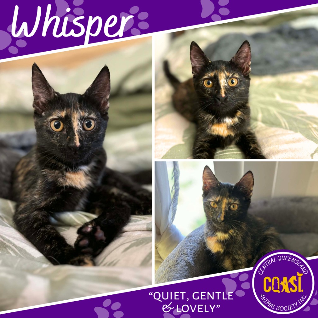 I’m more on the quiet side - Whisper by name, whisper by nature. I’m happy to do my own thing, just relaxing around the home.
