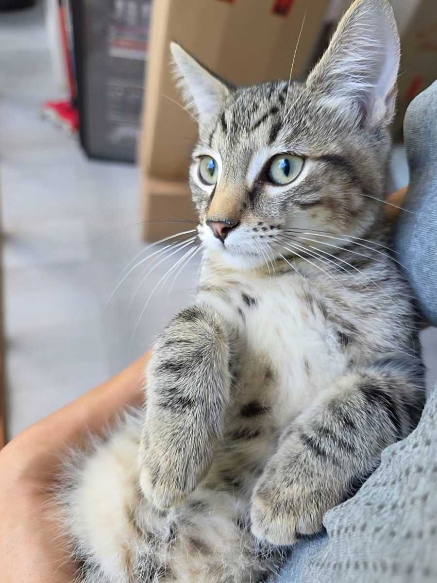 Meet Fenix, an adorable four-month-old male Tabby brimming with potential and warmth. Fenix is a delightful feline who gets along excellently with other cats, blending seamlessly into a multi-feline household. Though initially a bit reserved, once he has a chance to get to know his human companions, he blossoms into a companion whose calm and soothing demeanor will win your heart.
