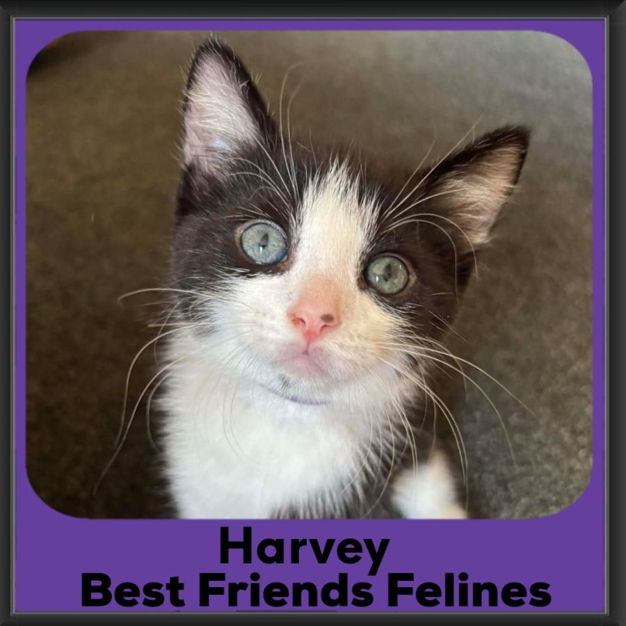 Harvey is the leader of his pack. His is confident, super friendly, and loves people. He has a beautiful black and white coat. Harvey loves to play and enjoys exploring. Harvey greets you every morning with rubs and purrs. He loves a lap to snuggle on. Harvey would suit a home where he can be the center of attention and get lots of love.