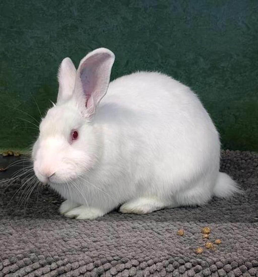 He would like to be an indoor bunny, but he would also love to have access to a secure outdoor enclosure when supervised. He enjoys munching on fresh greens and exploring his surroundings. If you're looking for a gentle and loving companion, Manny Kin might be the perfect bunny for you! With a little patience and understanding, he will blossom into a wonderful member of your family.