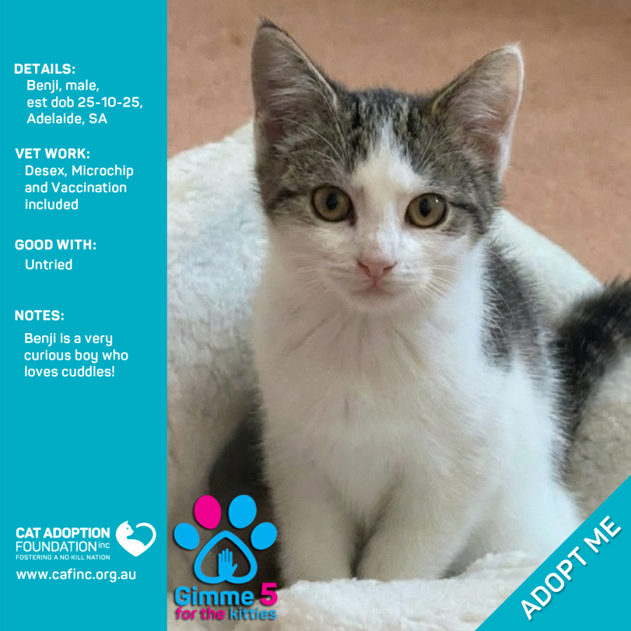 Donate to Benji at Cat Adoption Foundation Incorporated via Shout