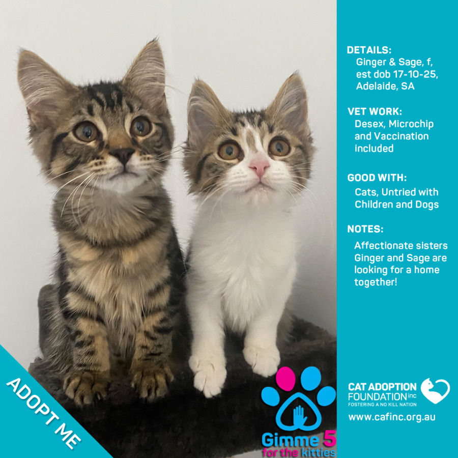 Donate to Ginger and Sage at Cat Adoption Foundation Incorporated via Shout